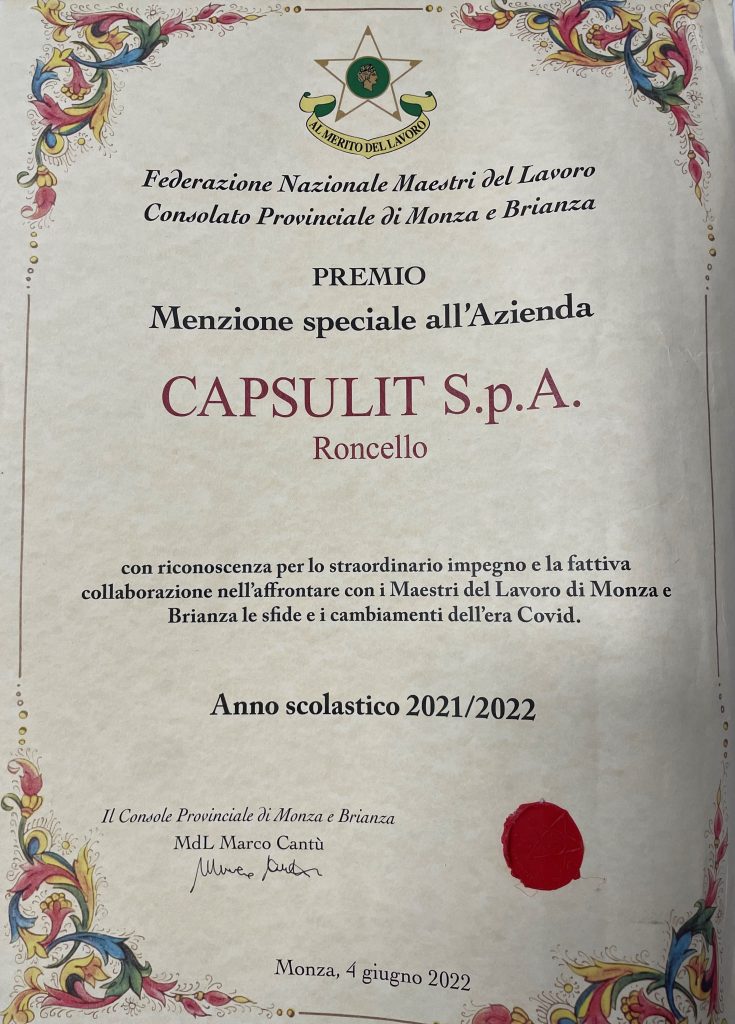 1. Production of electricity from renewable sources (current photovoltaic plant and new photovoltaic plant for a total of more than 1.000 kWp installed in Capsulit and other 309 kWp of new photovoltaic systems will be built in Capsulit Giglioli during 2025).